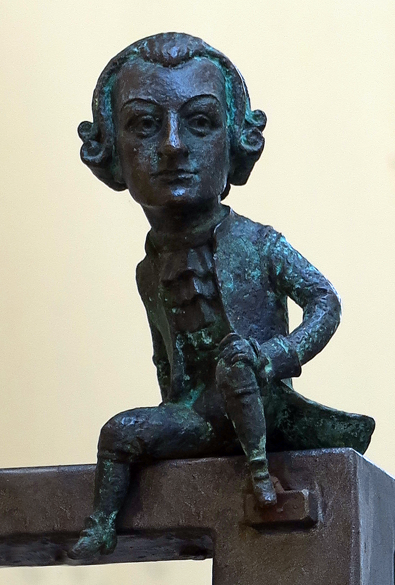 Скульптура на честь великого австрійського композитора та виконавця-віртуоза, який виявив свої феноменальні здібності у чотирирічному віці. Моцарт є одним із найпопулярніших класичних композиторів, що вплинув на подальшу західну музичну культуру. За свідченням сучасників, Моцарт мав феноменальний музичний слух, пам'ять і здатність до імпровізації. Склав понад 600 творів. Інструменти: орган, клавір, скрипка, альт. Помер у віці 35 років.