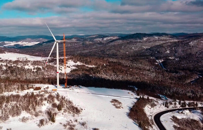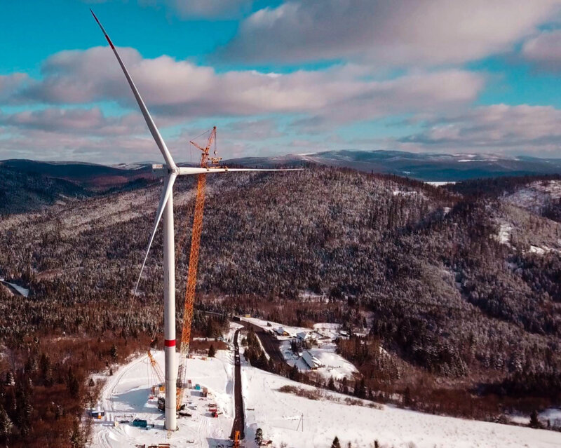 Перша вітряна турбіна вітропарку «Острівський», який розташований на межі областей (Львівська - Закарпатська). Територія Нижньоворітської громади, Закарпатської області.