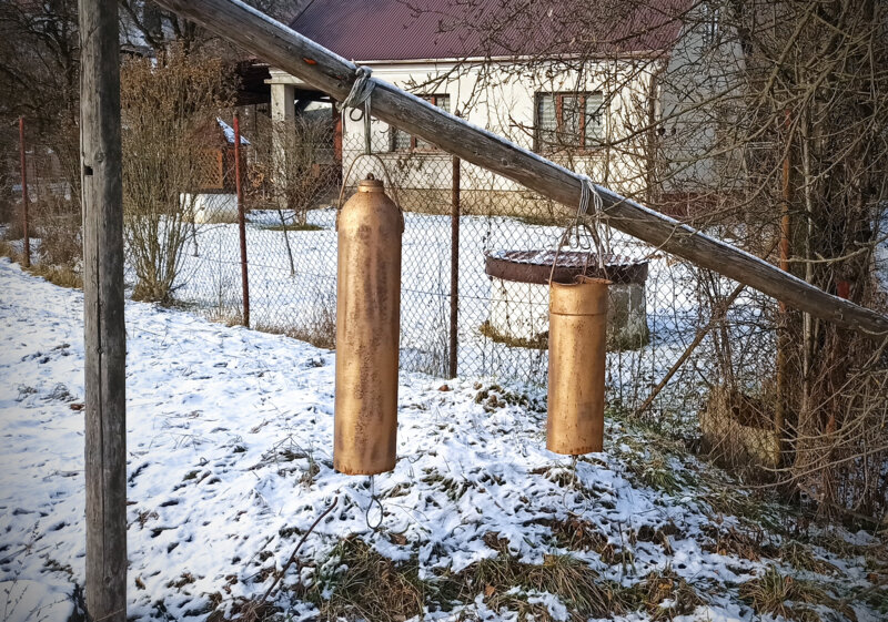 Химерні дзвони біля каплички у присілку села Верхнє Водяне, Тячівського району. Кажуть, у них дзвонять у великі свята.