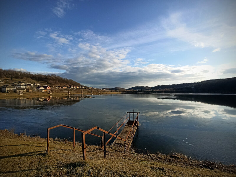 Вночі працює освітлення. Кажуть, встановили через цигани, які вночі незаконно виловлюють рибу.