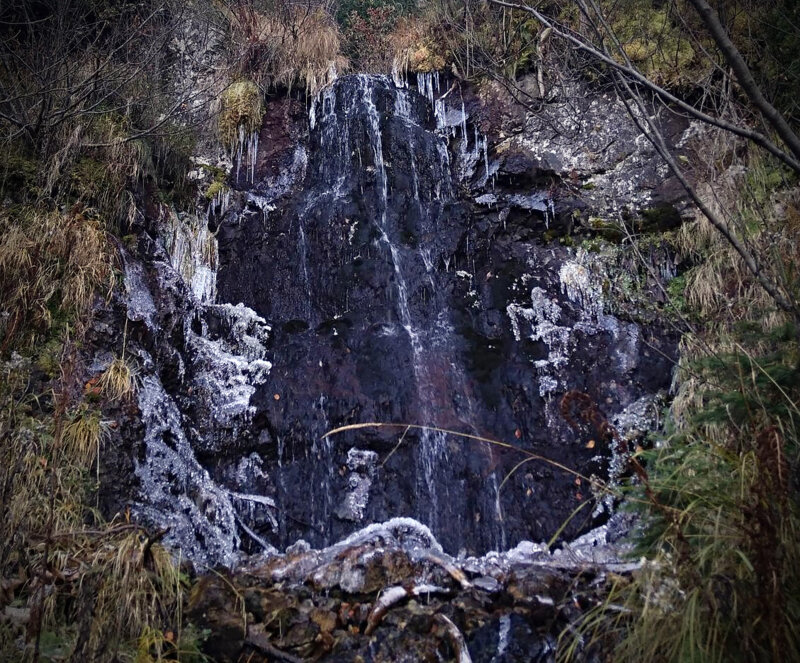 Водоспад «Кам'яна Стіна» на потоці далеко за селом Ділове, Рахівського району. Близько 5 метрів заввишки. А може, й вище.