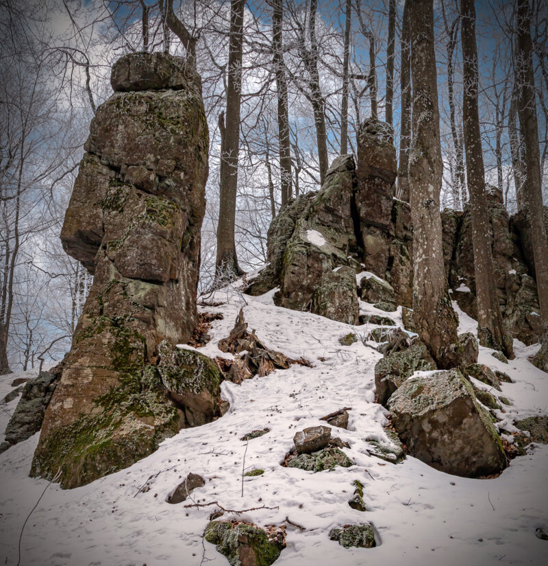 Анталовецькі скелі на околиці Анталовецької поляни, Ужгородського району. Залишок вулканічної пробки. Висота – 950 м.н.у.м. Скелі представляють собою агломератові туфи. Входять до складу лісового заказника місцевого значення «Анталівська галявина».