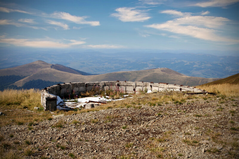 Залишки фундаментів трьох куль-антен, військового об'єкта радіолокації часів союзу. Військова частина №27904 (51-а окрема радіолокаційна рота). Гора Стій, над Воловцем.