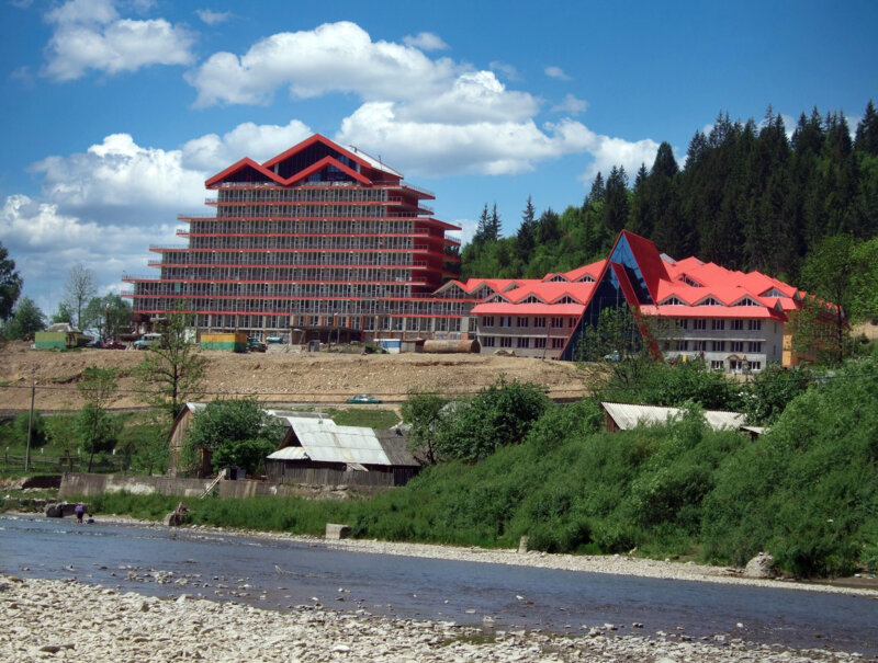 Величезний покинутий готель у центрі села Сойми, Міжгірського району. Будівництво розпочали ще 1976-го. Назва – «Джерела Міжгір'я».