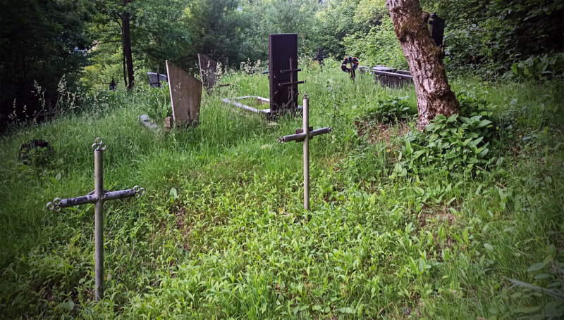 Старий цвинтар посеред лісу (на схилі гори) не околиці села Нересниця, Тячівського району, Закарпатської області. Неподалік – римо-католицька церква.