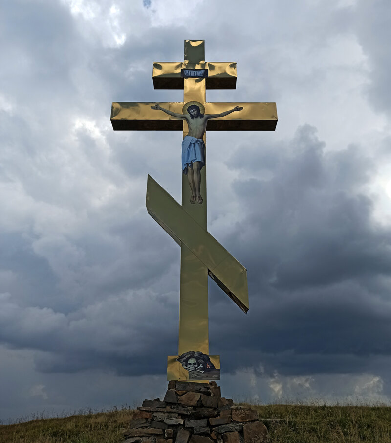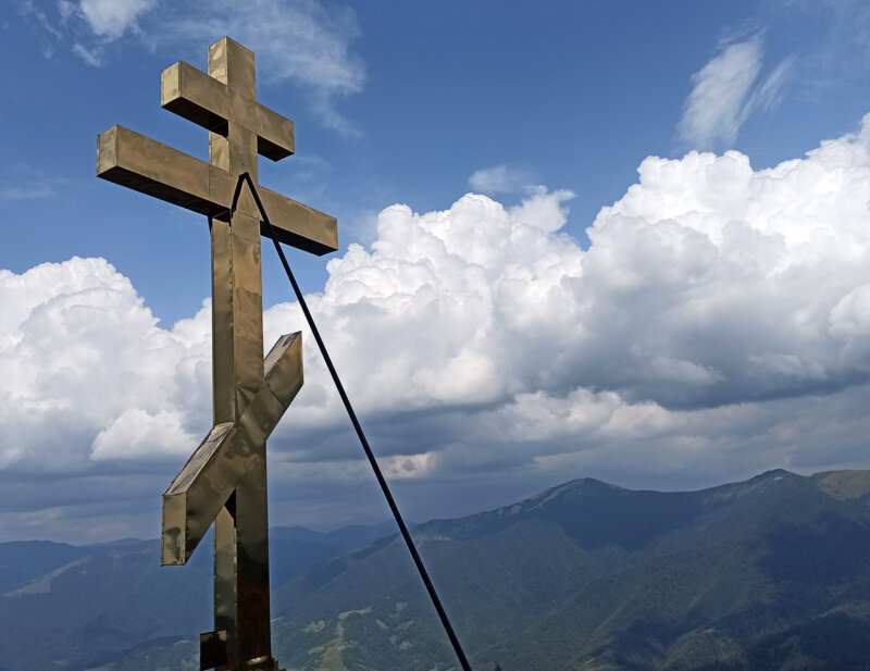 Православний хрест на перемичці на полонині Красна над селом Колочава, Міжгірського району.
