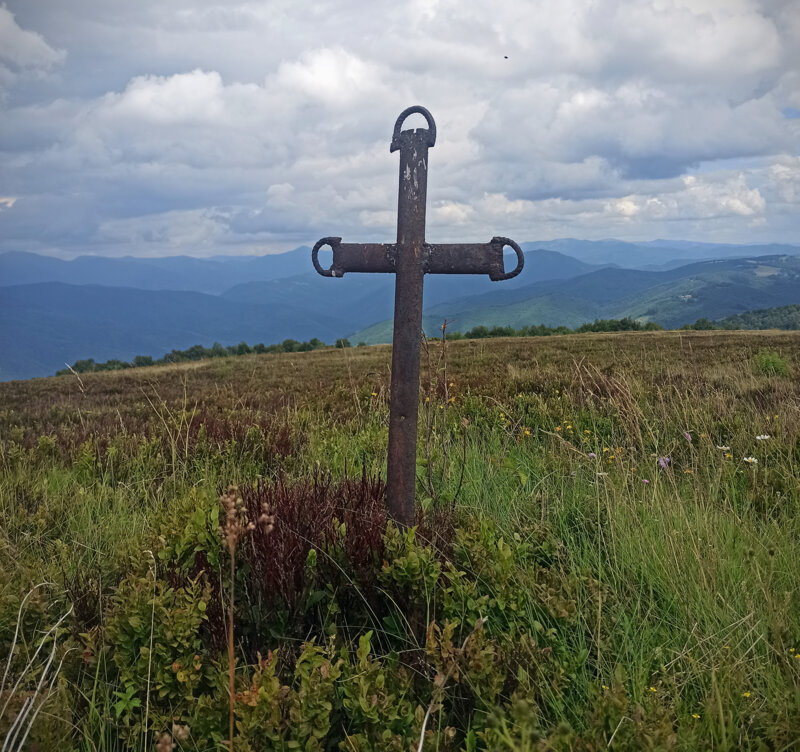 Старе поховання з пам'ятним хрестом недалеко від вершини полонини Кук, за селом Широке, Хустського району, Закарпатської області