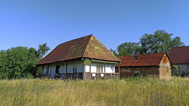 Стара хатка у селі Локіть, Іршавського району, Закарпатської області. В ній не живуть. Але за нею наглядають. Прибирають у дворі, косять траву.